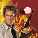Midt på plakaten ser vi en mand i en rød jakke, der kigger opad mod skikkelsen, mens en kvinde i hvidt, bundet med reb, ligger ved hans side. Dette fremhæver filmens karakter som en spændingsfyldt fortælling.