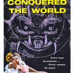 Plakaten udstråler en følelse af intens spænding med store, dristige bogstaver øverst, der deklarerer “SHOCK-FULL OF THRILLS!”. I midten ses en truende skikkelse med et atommotiv over hovedet, hvilket understreger filmens tema om atomar skræk.