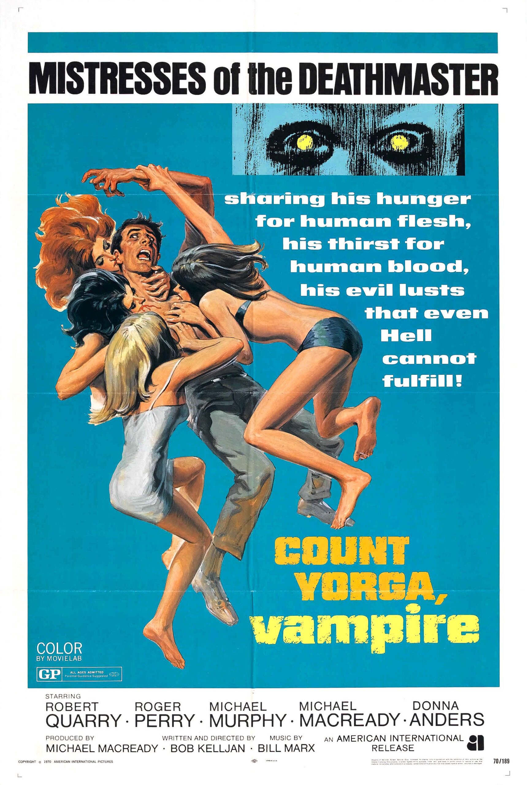 En række skuespillere er nævnt på plakaten, herunder **Robert Quarry**, **Roger Perry**, **Michael Murphy**, **Michael Macready**, og **Donna Anders**.