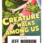 I midten af plakaten ses en skræmmende karakter, muligvis en form for monster, der holder en kvinde i armene. Kvinden ser ud til at være i fare, hvilket tilføjer et element af spænding og drama.