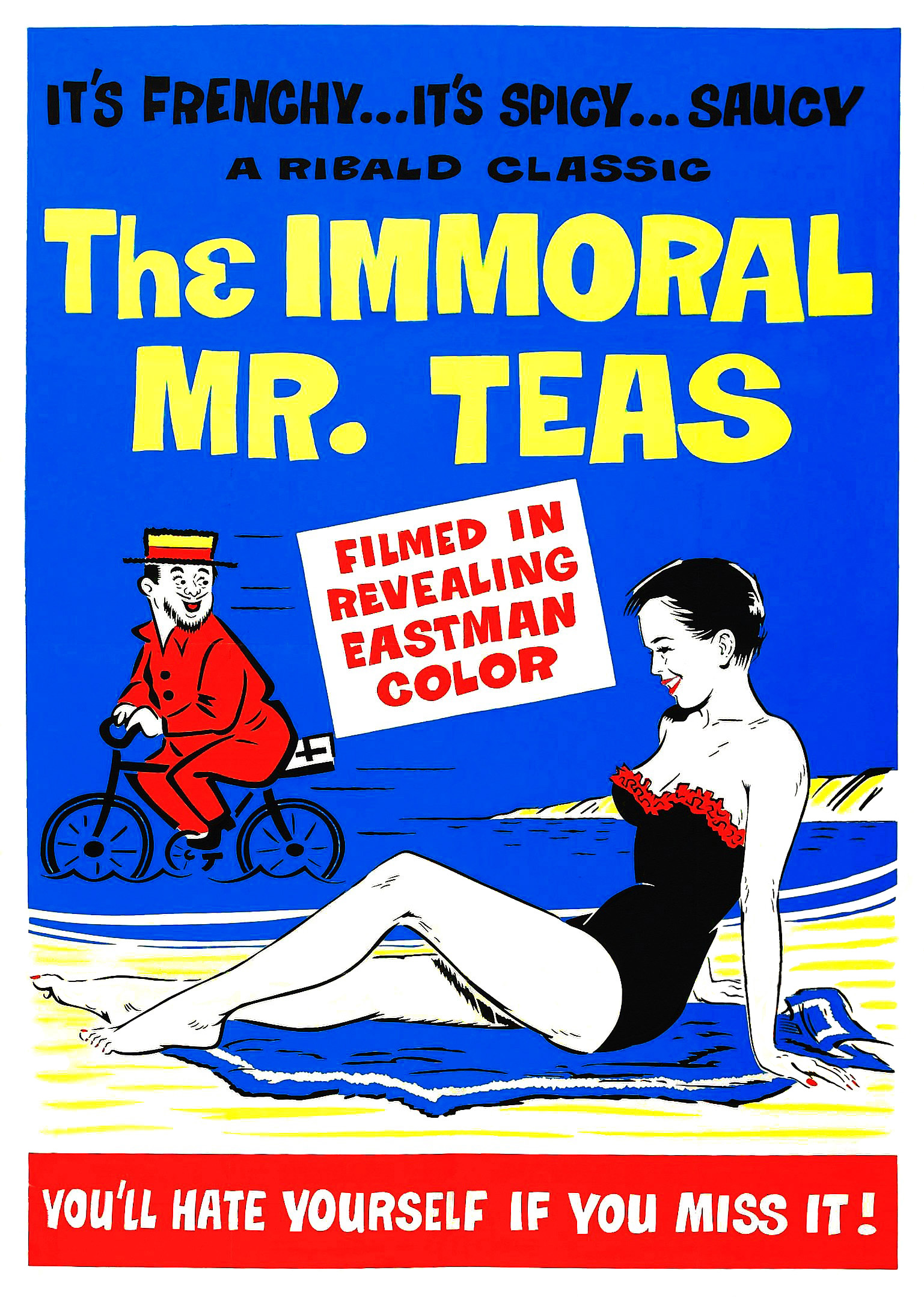 Plakaten indeholder fraser som “It’s Frenchy…It’s Spicy…Saucy” og “A Ribald Classic”, hvilket antyder en **fræk og underholdende** tone. Filmens titel står i store, iøjnefaldende **gule** bogstaver.