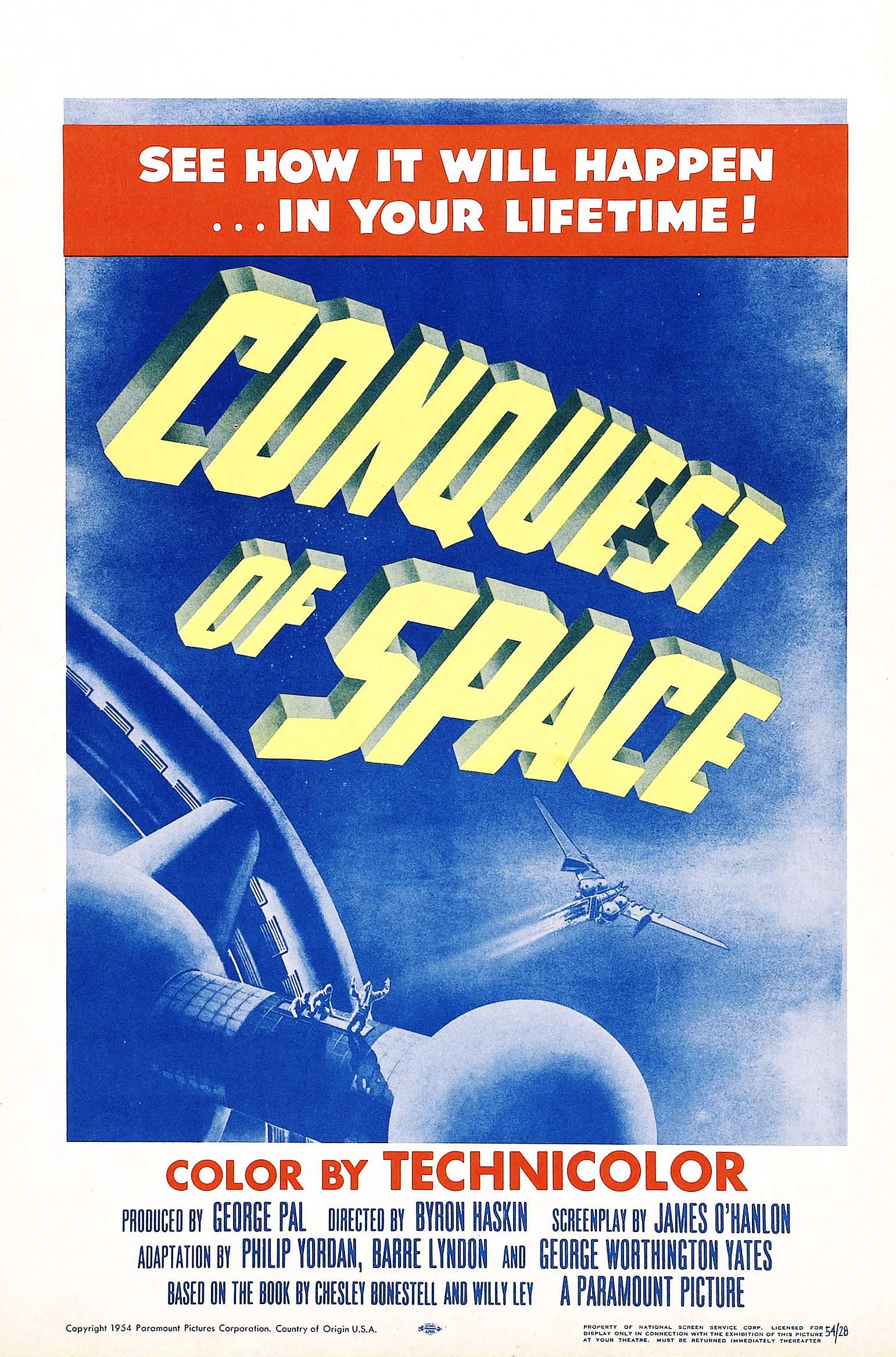 Baggrunden viser en **rummelig scene** med elementer af rumfart, herunder rumfartøjer og teknologiske strukturer, der understreger filmens tema om rumrejser.