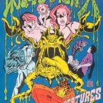 Plakaten viser en stor, farverig **illustration** med et retroinspireret design. To kvinder er afbildet i centrum, dristigt blandet med lyse **gule og pink** baggrundsfarver, der skaber en livlig og hypnotisk effekt.