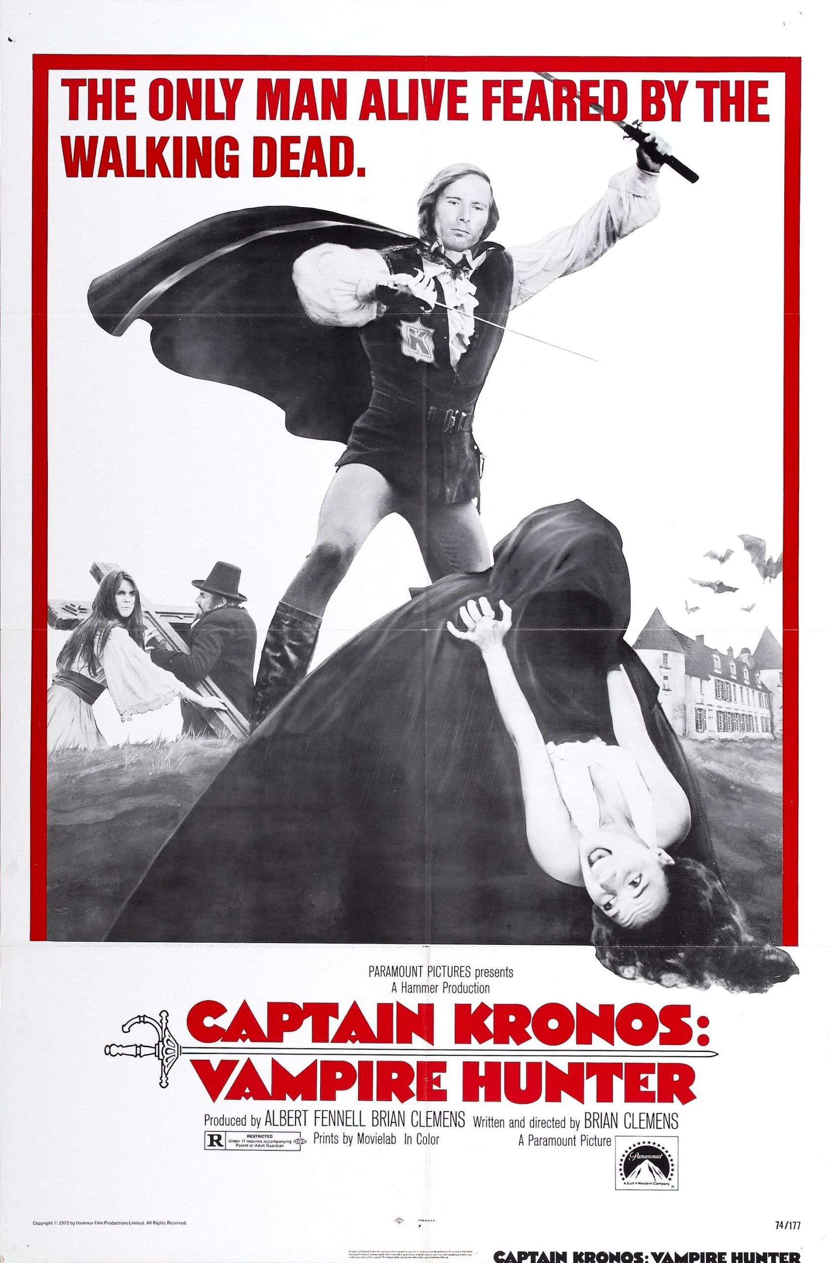 Plakaten domineres af en central figur i et dramatisk positur, klædt i en kappe med sværdet løftet højt. I baggrunden ses en kvinde i nød, mens flagermus flyver i skumringen, hvilket understreger filmens overnaturlige temaer.